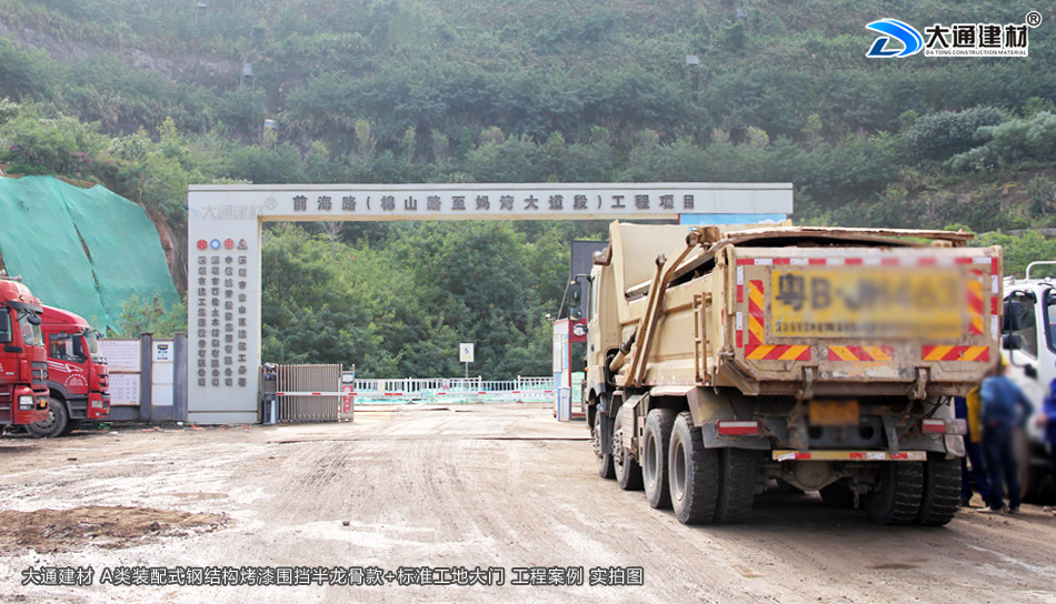 廣東省深圳市南山區(qū)前海路的棉山路至媽彎大道段工程項(xiàng)目使用了大通建材生產(chǎn)銷(xiāo)售的A類(lèi)烤漆鋼圍擋2.5米高半龍骨款、圍擋基礎(chǔ)塊、標(biāo)準(zhǔn)工地大門(mén)等產(chǎn)品
