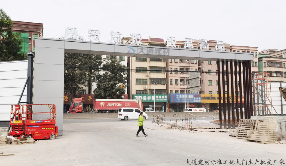 深圳市大通建材有限公司生產(chǎn)的標(biāo)準(zhǔn)工地大門,廠家直銷,美觀大氣、穩(wěn)固耐用;適用于市政建設(shè)施工、房地產(chǎn)項(xiàng)目施工、地鐵項(xiàng)目施工、管網(wǎng)改造等工程。更多詳情請致電梁先生13826562448