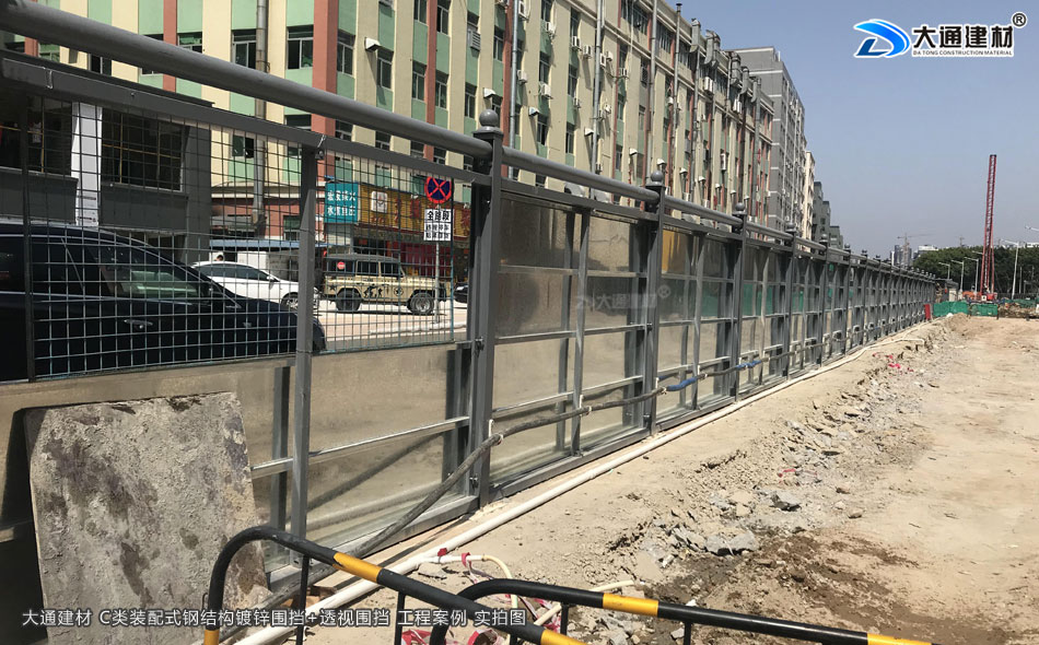 大通建材生產批發的 半通透式圍擋+C類鋼結構鍍鋅圍擋應用于深圳項目工程工地中