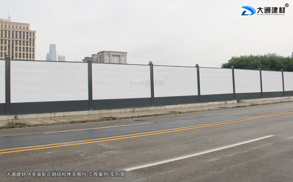 上述圖片展示的是 大通建材裝配式鋼結構圍擋烤漆A款定制4米高+圍擋基礎塊 實拍案例圖