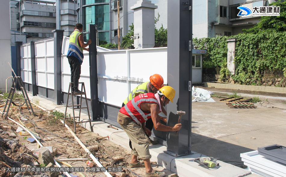 深圳大通建材生產符合惠州市政新標準的惠州圍擋A款,這是一款新型裝配式鋼結構烤漆圍擋,拆裝方便、抗風力強、安全性高,已廣泛應用于惠州各地區的房地產建設工程項目中。