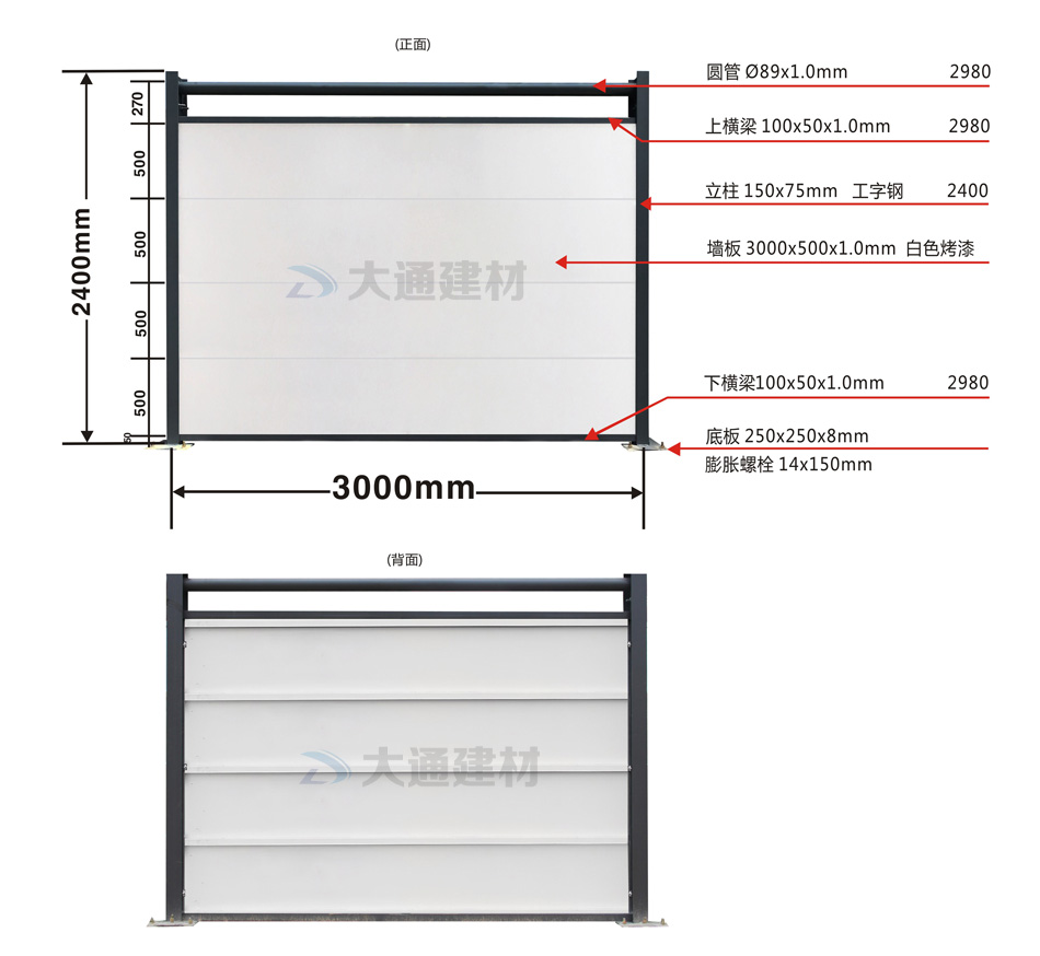 大通建材C類裝配式鋼結(jié)構(gòu)圍擋烤漆款有怎樣的規(guī)格特點呢?