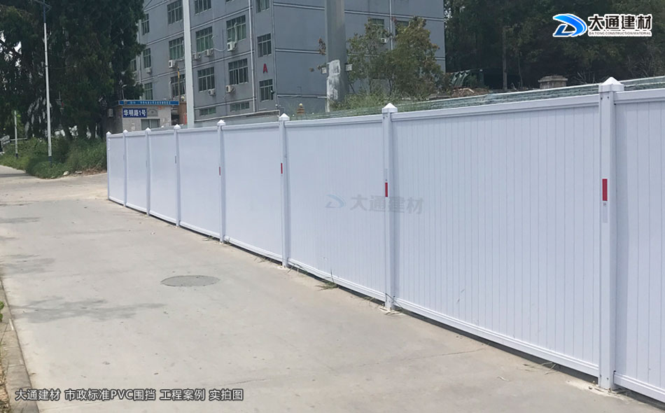 廣東省深圳市龍華區華明路的其中一個路段的施工場所在2018年使用了大通建材PVC圍擋進行,歷經3年多的狂風暴雨,原來設置的PVC圍擋有了一定的損壞,加上近兩年深圳市政要求施工圍擋標準的安全性更高,所以該該的負責人對這些圍擋進行新的升級改造時使用了安全穩定性更高的大通建材新型裝配式鋼結構圍擋烤漆C。
