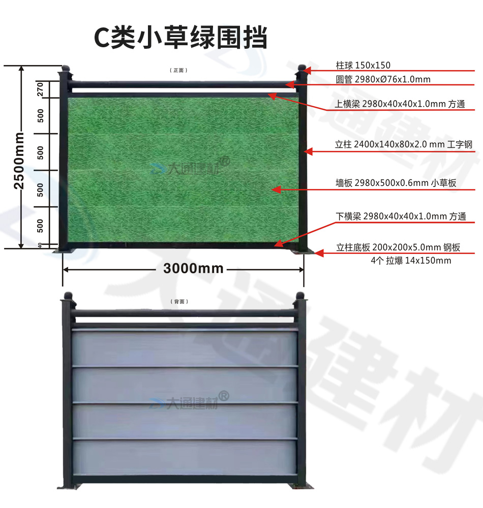 大通建材C類小草綠圍擋,拆裝便利、快速拼裝、結構牢固、安全性高,已廣泛應用于深圳、東莞、惠州、廣州、汕頭等地區的工程施工項目中