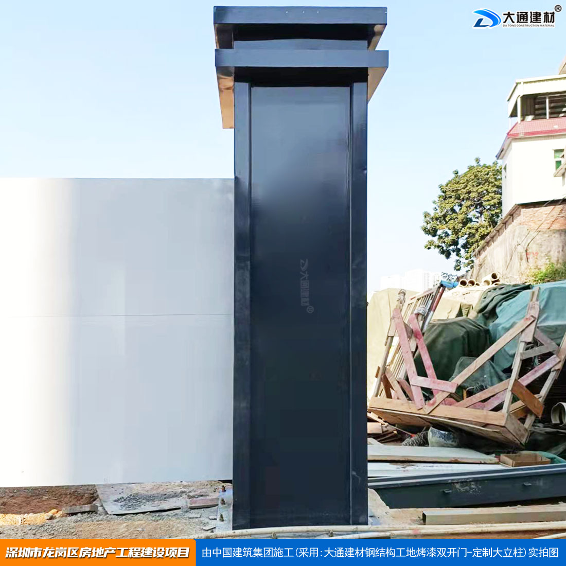 深圳大通建材生產銷售的工地烤漆雙開門-鋼結構工地大門適用于各種市政工程項目、房地產項目、地鐵修建項目施工、管網改造、小區改造、城市建設、道路修建等工程項目使用