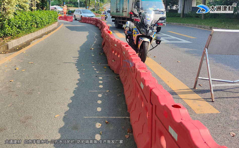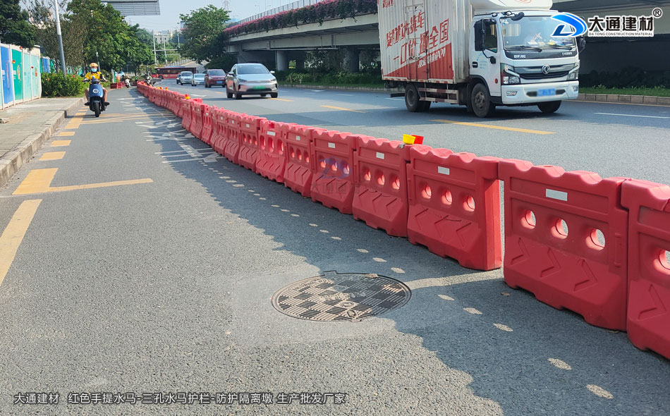 大通建材 手提水馬-紅色水馬護欄-三孔水馬隔離墩(可注水) 工程案例實拍圖